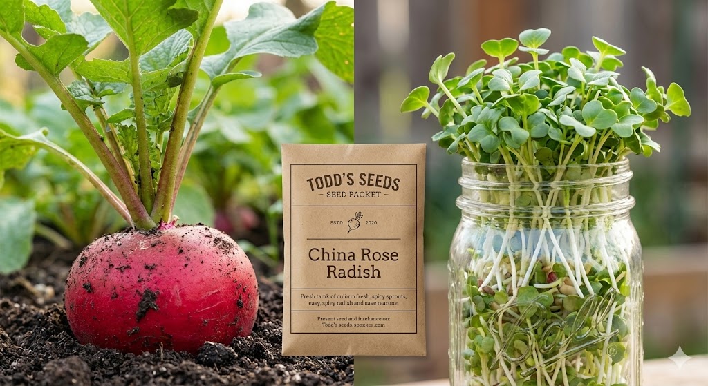 • Radishes (Mega-Packs): China Rose, Triton Purple Stem, Rambo.