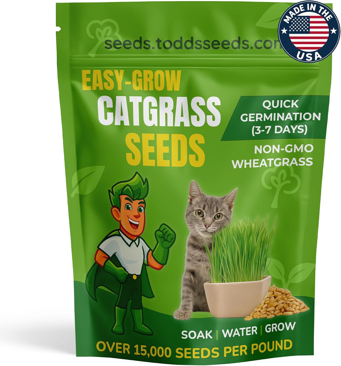 Todd’s Seeds delivers a full 1-pound bag of premium, non-GMO wheatgrass seeds — perfect for growing fresh, lush cat grass indoors. No fillers. No mystery blends. Just clean, USA-packed seeds that are 100% pet-safe and easy to grow in trays, planters, or even mason jars.
